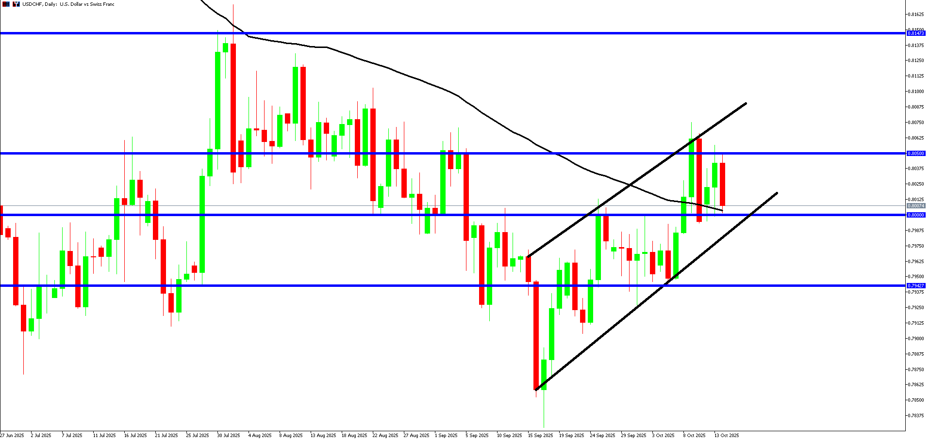 USDCHF has experienced sharp bearish momentum, with the price dropping from 0.8050 to test the 150 SMA (black line) for potential support. The price remains in a rising flag and looks likely to find support from the 0.8 pivot soon.